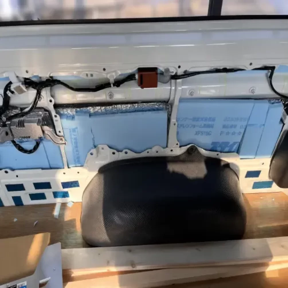 下地シートを買い足してもよかったのだが、天井は板張りをするので下地シートまでは不要かなと。しかしながら、前列シート部分の天井は板張りが難しいのでそこだけ下地シートを入れればよかった。とちょっとだけ後悔している。